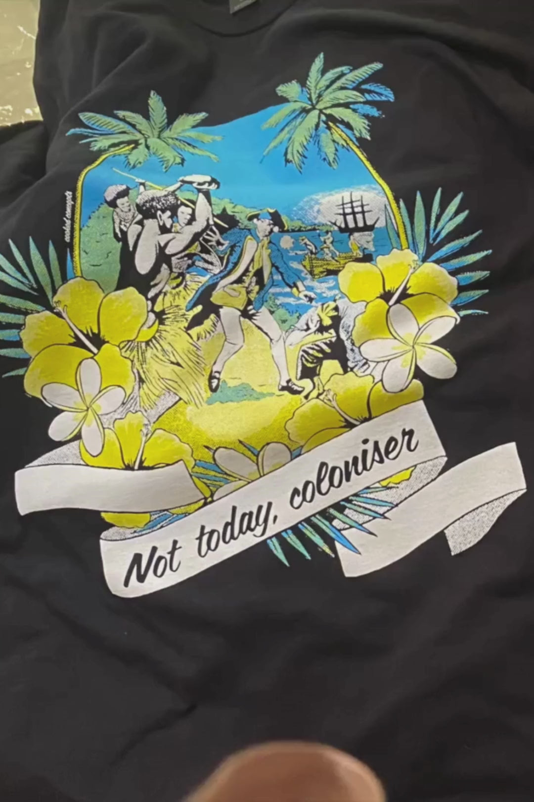 Printed in vibrant island tones on a premium black tee, this design is part protest, part art, and 100% Cooked.